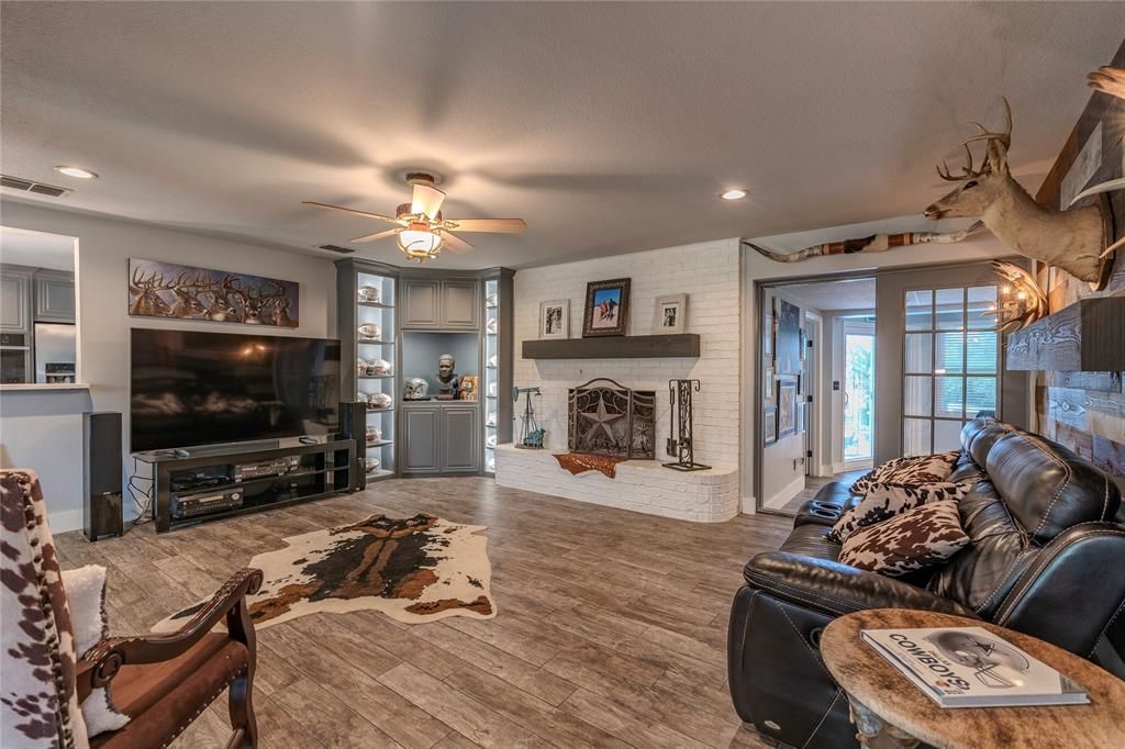 Experience serene country living on this remarkable 2.3-acre property, where privacy, thoughtful design, and natural beauty come together seamlessly. The main residence welcomes you with a spacious open-concept layout, ideal for hosting gatherings or enjoying everyday living with ease. The home offers 5 bedrooms, 4.5 bathrooms, and a versatile game room that can effortlessly serve as an additional bedroom if desired. Outdoors, the expansive grounds invite both relaxation and recreation, with room for two horses and space to enjoy the open landscape. A picturesque pond, complete with a floating aerator fountain and stocked with catfish, perch, and crappie, enhances the setting. The backyard is a true retreat, featuring a sparkling pool, a calming fountain, and a dedicated dog run for pets. An inviting guest quarters, currently styled as a sports-themed entertainment space, adds flexibility for work, leisure, or hosting. The front and back yards are supported by a sprinkler system fed by well water, while the home itself is on city water with the option to easily convert to well water if preferred, offering both efficiency and versatility. Located just five minutes from Lake Weatherford Marina, with access to a boat ramp, dining, volleyball leagues, and shopping at the Shops of Willow Park, and only a mile from Squaw Creek Golf Course, this property delivers an exceptional balance of comfort, convenience, and the peaceful rhythm of country living.