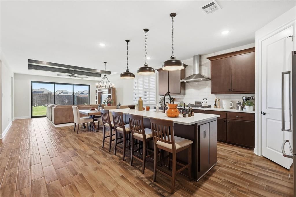 Welcome to 16912 Eastern Red Blvd a home that immediately feels like “the one.” From the moment you step through the upgraded 5-panel mahogany front door, you can tell this isn’t just another new build. It’s a thoughtfully upgraded home designed for real life, real gatherings, and real comfort. The heart of the home is the bright, open great room, where decorative ceiling beams and designer lighting create a warm, inviting atmosphere. A 3-panel sliding patio door fills the space with natural light and opens wide to the backyard, making everyday moments — morning coffee, weekend hangouts, or hosting friends — feel effortless. If you love to cook or entertain, the kitchen will absolutely steal your heart. It features a premium KitchenAid appliance package with double ovens, a custom vent hood, farmhouse sink, quartz countertops, extended subway tile backsplash, and upgraded cabinetry that gives the entire space a true custom feel. A dedicated office area adds the perfect touch of functionality — ideal for working from home, managing household tasks, or creating a quiet study space. The primary suite is a peaceful retreat with a spacious walk-in shower and beautiful finishes throughout. Guests get an upgraded experience too, thanks to the bronze, clear-glass shower doors in the secondary bath. Every detail has been elevated: plantation shutters, bronze hardware, two-tone designer paint, upgraded porcelain flooring in the main areas, and plush upgraded carpet with premium padding in the bedrooms. Even the exterior shines with enhanced stone and brick elevation, upgraded bronze coach lighting, and a raised stone flower bed package that boosts curb appeal from the street. The home is also pre-wired for an alarm system for added peace of mind. This is the kind of place where life feels a little easier, a little brighter, and a lot more beautiful. If you’ve been waiting for a home that feels “just right,” this one is worth seeing in person.
