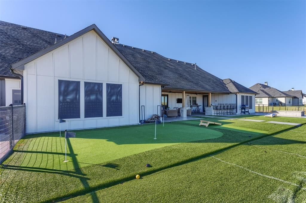 Welcome to 1810 J.C. Maples Rd in Gunter—a true Texas gem loaded with upgrades inside and out! Set on 1.78 acres, this beautifully designed 4-bedroom, 2.5-bath home offers two spacious living areas, a private study, and a 6-car garage built for those who need room for everything. Step inside and be wowed by the open layout, split-bedroom design, and stamped concrete flooring throughout. The chef’s kitchen steals the show with a commercial-grade 6-burner cooktop and built-in grill, drop sink, custom cabinetry, and a massive island perfect for cooking, gathering, and entertaining. Out back, experience outdoor living at its finest—a built-in kitchen, stone fireplace, and even a putting ring for golf enthusiasts. The east-facing backyard means cool shade in the evenings, ideal for relaxing or hosting summer get-togethers.This home delivers luxury, functionality, and Texas charm all in one—the most sought-after floor plan in the state, upgraded top to bottom. Don’t miss this one-of-a-kind property built for those who want it all!