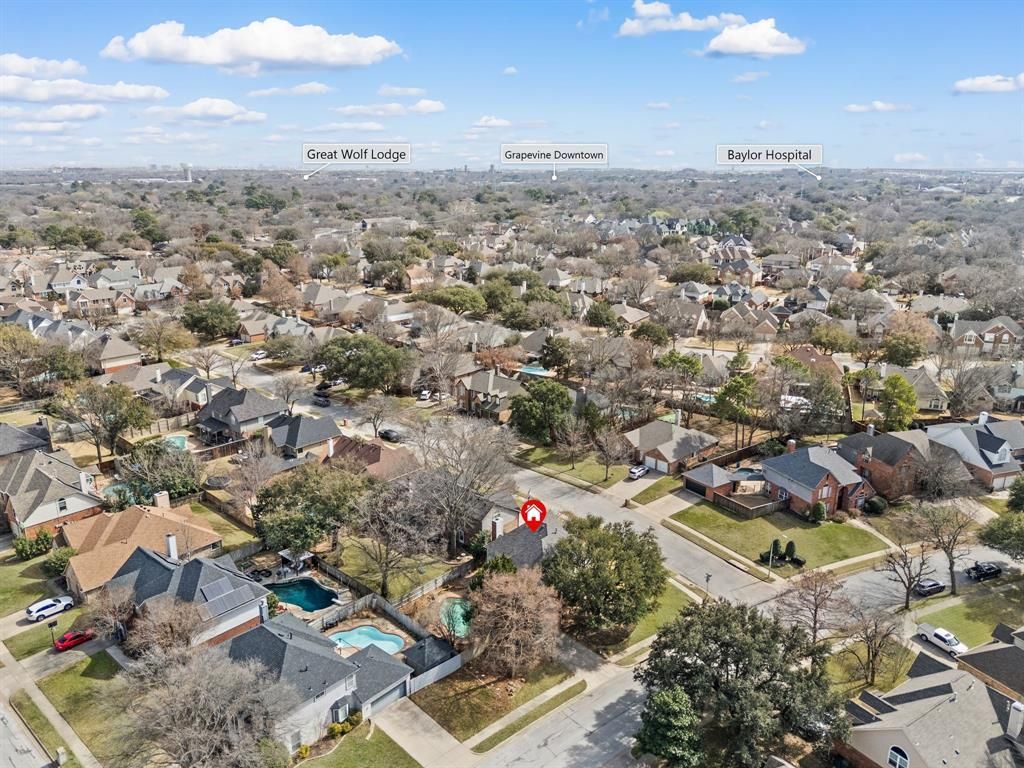 Welcome to this beautiful home, zoned for Carroll Schools, with an unbeatable location for an outdoor lifestyle. In 2025, the property received a new Class 4 impact-resistant roof along with 5-inch gutters, offering peace of mind, durability, and long-term value. 20 original windows have been replaced with energy efficient vinyl windows! Inside, engineered hardwood flooring flows throughout the downstairs, creating a warm and elegant foundation for everyday living and entertaining. The kitchen is both stylish and functional, featuring Silestone countertops, 42-inch cabinetry, and a convection oven, ideal for anyone who loves to cook or host. The open layout connects seamlessly to the living spaces, while a guest half bath downstairs adds convenience for visitors.Step outside and enjoy your own private retreat. The in-ground saltwater pool is perfect for summer relaxation, complemented by a covered patio with a ceiling fan and light, added in 2024, making it an inviting space for outdoor dining or unwinding year-round. The spacious corner lot provides extra privacy and has a full sprinkler system.The primary suite is a true highlight, featuring a remodeled master bathroom with granite countertops, an enlarged walk-in shower, and a jetted soaking tub—a spa-like escape at the end of the day.Location truly sets this home apart. Enjoy the convenience of being within walking distance to Horseshoe Trails and Grapevine Lake, offering scenic walks, biking, and outdoor recreation just moments from your door. Whether you’re seeking modern updates, outdoor enjoyment, or proximity to nature, this home delivers on all fronts.