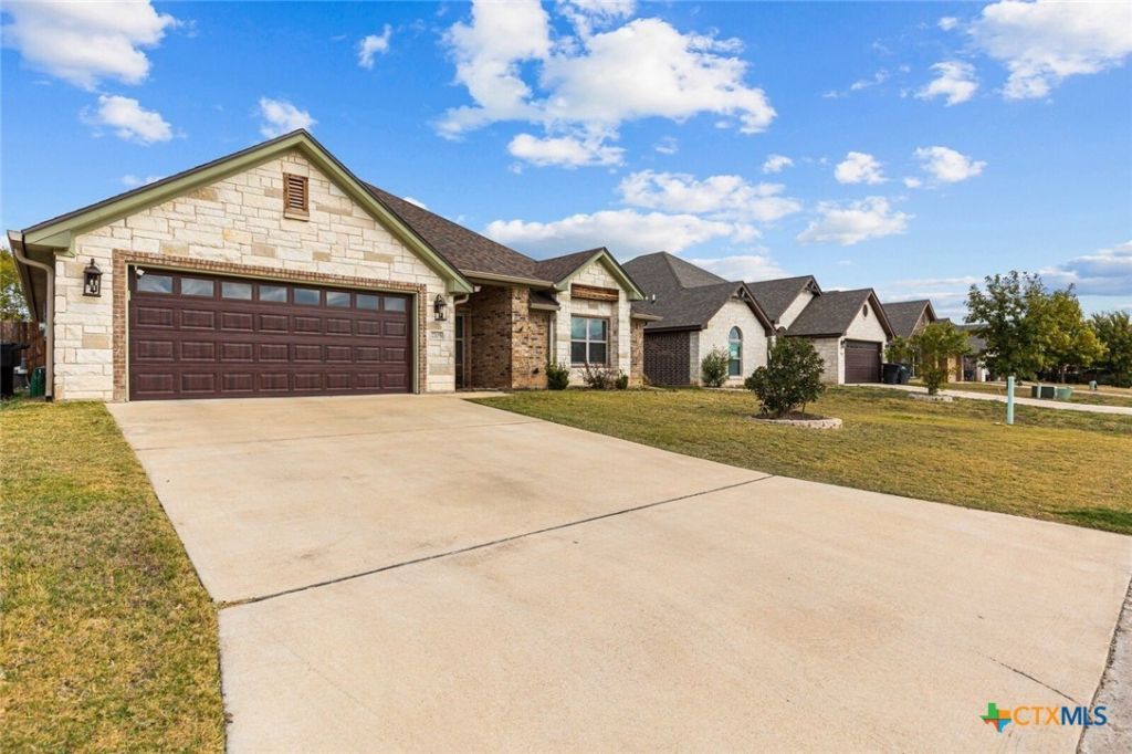 BEAUTIFUL 4 BEDROOM, 2 BATH GLYNN ALAN HOME IN WEST TEMPLE'S PLAINS AT RIVERSIDE NEIGHBORHOOD! This smart & energy-efficient split-bedroom plan has been meticulously maintained and is packed with quality upgrades, including spray foam insulation, full guttering with leaf protection, and Smart Home features. Enjoy a spacious open-concept living/dining/kitchen anchored by wood look tile flooring, an attractive brick fireplace under a mantle & shiplap wall, complemented by elevated ceilings surrounded by crown moulding. The kitchen shines with stylish black stainless appliances (including a new dishwasher), a dedicated corner pantry, Shaker maple solid wood cabinets with soft-close hinges, and a Kraus® stainless steel deep farmhouse sink. The generous dining area has backyard views & room for entertaining. The private primary suite is a true retreat with its numerous design touches such as the trayed ceiling & accent shiplap wall and beautiful solid wood barn door. The spacious master opens into a double vanity bath complete with a soaking tub, large step in shower, and his-and-her closets. Two of the secondary bedrooms have cozy carpet while the third has the solid surface tile which is perfect for a play or hobby room, study, or workout room! The extended laundry room offers an abundance of storage with a granite countertop for laundry folding with outside views. When venturing outside it's easy to relax & enjoy the deep covered back patio overlooking a north-facing backyard. Additional highlights include an insulated garage and a new roof (2024). Convenient to Temple, Belton, and I-35 and in the Belton ISD! A gem in the heart of Temple/Belton!
