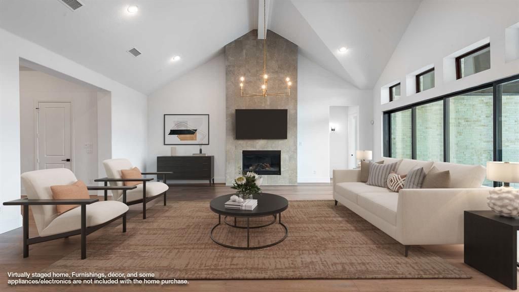 READY FOR MOVE-IN!Home office with French doors at the entry. Hardwood floors throughout living areas. Formal dining room. Kitchen features a large island with built-in seating, double wall oven, 6-burner gas range top, lots of counter space and a large walk-in pantry. Open family room with a wood mantel fireplace and a sliding glass door. Primary suite with a wall of windows. Double doors lead to primary bath with separate vanities, freestanding tub, separate glass-enclosed shower and two large walk-in closets. Guest suite with a full bath and walk-in closet. Covered backyard patio. Mud room and powder room off entry leads to the three-car garage.