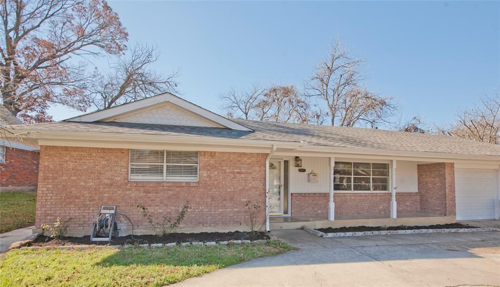 Welcome to 3821 Winifred Drive — a wonderful opportunity to own a classic 1960s Ranch-style home in the highly sought-after Wedgwood neighborhood of Fort Worth. A convenient circular driveway welcomes you home and leads to an inviting long covered front porch, perfect for relaxing and enjoying the charm of this established community. Inside, the flexible floor plan offers exceptional versatility with two spacious living areas, a cozy breakfast nook, and a formal dining space ideal for gatherings. The family room features a beautiful brick fireplace with gas logs, creating a warm focal point for the home. New French doors open to the backyard, seamlessly blending indoor and outdoor living. Step outside to enjoy a covered patio and an expansive concrete pad—perfect for outdoor seating, entertaining, or a play area for children. This home offers four generously sized bedrooms, each with walk-in closets and 2-inch faux wood blinds. The large guest bathroom includes built-ins, a stylish vanity with dual mirrors, and a tub for comfort and convenience. One of the bedrooms offers exceptional flexibility and would make an ideal library, playroom, or home office, complete with built-in bookshelves, a walk-in closet, and a sliding door providing direct access to the shady backyard. Light & bright the formal living and dining area has many functions for modern home needs. Recent updates add peace of mind, including a new roof installed in August 2025 and foundation work completed by a previous owner. Brand new dishwasher and cook top is about a year old. Located with quick access to major highways, shopping, and restaurants, this home combines timeless MCM character with everyday convenience. Don’t miss your chance to make this Wedgwood gem your own!