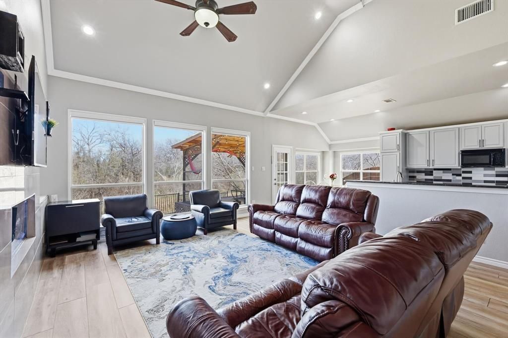 ***MULTIPLE OFFERS...HIGHEST & BEST DUE BY 5:00 PM MONDAY, MARCH 2nd***Beautiful Drive Up Appeal welcomes you to this Spacious Home, perfectly positioned on a Rare Oversized CulDeSac, Creek lot backing to Peaceful Green Space w a Scenic Creek beyond. Upon entry, a dramatic open foyer sets the tone, featuring a formal living & dining area along w an open stairway that enhances the homes airy feel. The heart of the home offers an Open Concept living, dining & kitchen designed for both everyday living & entertaining. The bright kitchen features an island breakfast bar, gas cooktop & striking black granite countertops that beautifully complement the modern grey cabinetry & walls. Continuous flooring throughout the main living areas creates a seamless, inviting flow. The Living Room & Nook showcase expansive backyard views, where the lush green backdrop provides exceptional privacy & tranquility. A stunning marble accented feature wall with a builtin fish tank creates a truly distinctive focal point. The oversized primary suite downstairs offers ample space for a sitting area & 2 Walkin Closets, as well as serene backyard views. Upstairs, you’ll find a spacious Gameroom along w 3 additional Bedrooms. An additional fifth bedroom downstairs serves perfectly as a Guest Suite, Study or Flex Space. The garage has been thoughtfully modified to incorporate an additional kitchen area & laundry space, offering enhanced flexibility and functionality. Need extra covered storage? The 4 Bay carports provide ample space for multiple vehicles, hobbies, or equipment, all securely enclosed behind a double gate & fenced area. The backyard is designed for year round enjoyment, featuring a covered patio with a translucent roof...providing abundant natural light while offering protection from the elements. Recent updates include fresh interior paint & new carpet, making this home truly Move In ready. This Property offers Space, Privacy & Flexibility...all in one Exceptional Home.