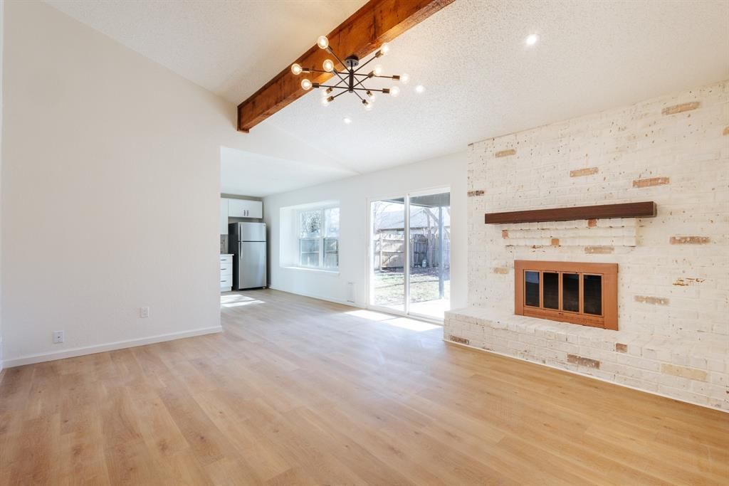 Welcome to your new home at 3921 Teaberry Lane! This tastefully renovated home has been modernized from the ground up, just a moment’s walk away from Candleridge Park and its walking trails. The home’s exterior brick and centerpiece fireplace have been freshly limewashed, making for a modern feel with centuries old technique. The 4 bedrooms and 2 baths are perfect for a new or growing family. The anchoring fireplace in the living area will keep you warm during cold nights, and the large AC unit will keep you cool in the hot Texas summers. The gorgeous kitchen is filled with brand new appliances and plenty of cabinetry, including a lazy Susan corner and quartz countertops. Your future home is beautiful for hosting friends and loved ones, and comes fully equipped with a brand-new range, fridge, dishwasher and disposal. The large, fenced backyard and covered back patio are both great for hosting birthdays and family gatherings. The open concept layout is filled with natural light, allowing you to seamlessly transition throughout the house. Finally, the Owner's suite is enhanced with a spacious walk-in closet and spa-like shower, offering complete privacy from the three additional freshly carpeted bedrooms. Make it yours and schedule your showing today