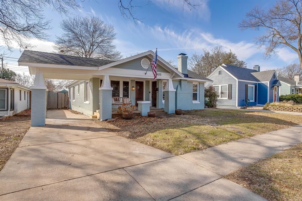 Situated on a charming block of Birchman Avenue in Arlington Heights, this Craftsman-style home is surrounded by beautifully maintained Craftsman and Tudor residences, trees, and sidewalks that reinforce the area’s timeless appeal and strong sense of community.The curb appeal is immediate, and inside the home offers an ideal blend of classic character and thoughtful modern updates. Many of the major improvements buyers value most have already been completed, including newer HVAC, roof, windows, plumbing, electrical, and foundation repair with a transferable warranty available—providing peace of mind for years to come.The kitchen has been tastefully remodeled with all-new cabinetry, featuring a mix of solid-front cabinets for ample storage and select glass-front cabinets that add an elegant display element. Stainless steel appliances and classic subway tile complete the space, while additional built-in storage in the laundry room adds everyday convenience. Throughout the home, newer wood floors, crown molding, and updated fixtures enhance the warm, cohesive feel, and the living room’s gas fireplace provides comfort and charm.The home offers three bedrooms and one and a half baths. The full bath is a standout for the neighborhood, featuring both a soaking tub and a separate walk-in shower—a rare find in Arlington Heights. The design pairs black-and-white hexagon tile on the floor and shower pan with oversized subway tile surrounds. Granite accents, a glass detail above the pony wall, and a custom vanity crafted from an antique furniture piece—topped with granite and paired with a wood-framed mirror—create a space that feels both classic and refined.Outside, enjoy a covered front porch, attached carport, and a spacious backyard with room to gather, relax, or expand. Ideally located near Central Market, the Cultural District, and the shops and restaurants along Camp Bowie, this home offers character, quality updates, and an excellent Fort Worth location.