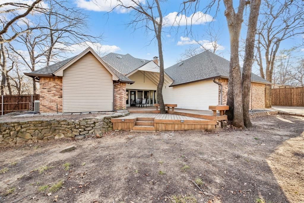 Welcome to this beautifully updated single-story brick home offering endless possibilities with the rare blend of country-style space right in the heart of the city and best of all, NO HOA. Situated on over .55 of an acre, this property is framed by mature trees in both the front and backyard, creating a private and inviting setting. A driveway runs the full length of the lot and is secured by an electric gate, providing ample parking along with a carport and extended space for guests, hobbies, or recreational vehicles. Inside, the home features stylish tile flooring throughout, decorative lighting, and elegant wainscoting that add warmth and character. The eat-in kitchen offers generous counter space and built-in shelving to meet all your storage needs. The primary suite is a relaxing retreat with a spa-like bathroom featuring a soaking tub and a dual waterfall shower designed for a luxurious experience. Step outside to the covered back patio overlooking the expansive backyard, where the possibilities are endless. There is plenty of space to create your dream outdoor oasis, add a pool, RV parking, workshop, guest house, or expand the existing home. Located within the award-winning GCISD, this property combines space, flexibility, and an unbeatable location. Opportunities like this are rare, come see your chance to own a piece of comfort and possibility.