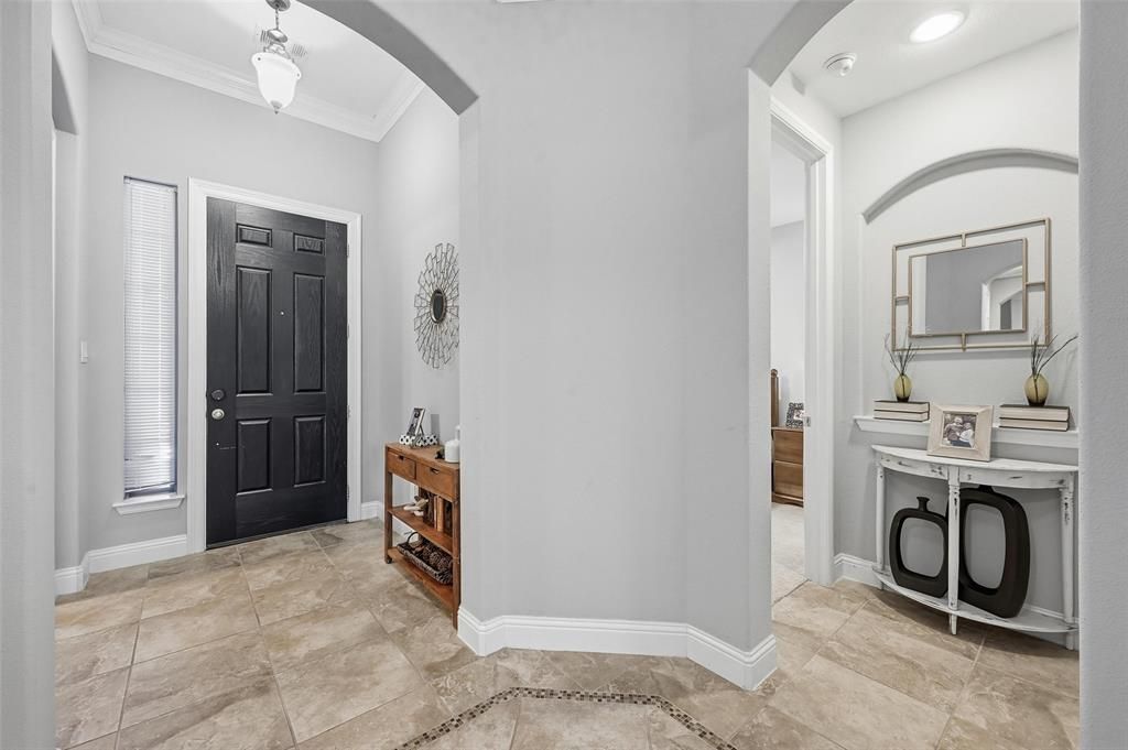 Fantastic location and beautiful curb appeal welcome you to this stunning home featuring an open floor plan and designer finishes throughout. The chef’s kitchen is the heart of the home, complete with stainless steel appliances, granite countertops, abundant cabinetry, and not one but two generous islands—perfect for meal prep and entertaining.The spacious living area centers around a cozy fireplace, creating a warm focal point for gatherings. A formal dining room offers an elegant space for hosting, while the large dedicated office provides privacy and functionality for work or study. The primary bedroom is expansive and tranquil, with a luxurious en suite bath and an oversized walk-in closet. All secondary bedrooms are thoughtfully split from the primary for added privacy and are generously sized, filled with natural light. Enjoy indoor-outdoor living on the screened-in patio, which functions as an additional living area ideal for relaxing or entertaining. The backyard is spacious and serene, overlooking a peaceful green space and pond, offering a sense of privacy and a beautiful natural backdrop. This remarkable home is located near the highly rated schools and is close to fabulous shopping and restaurants.