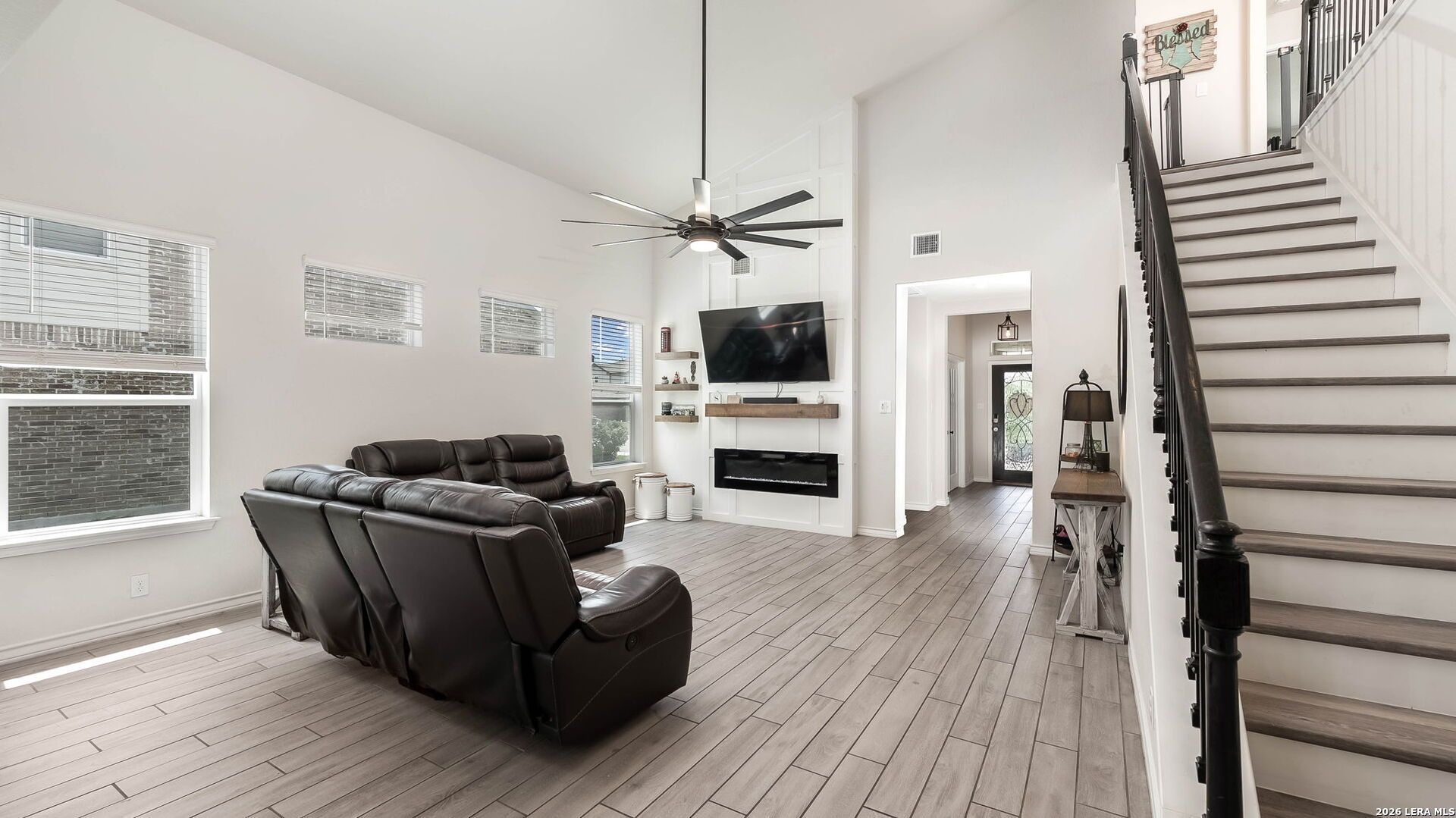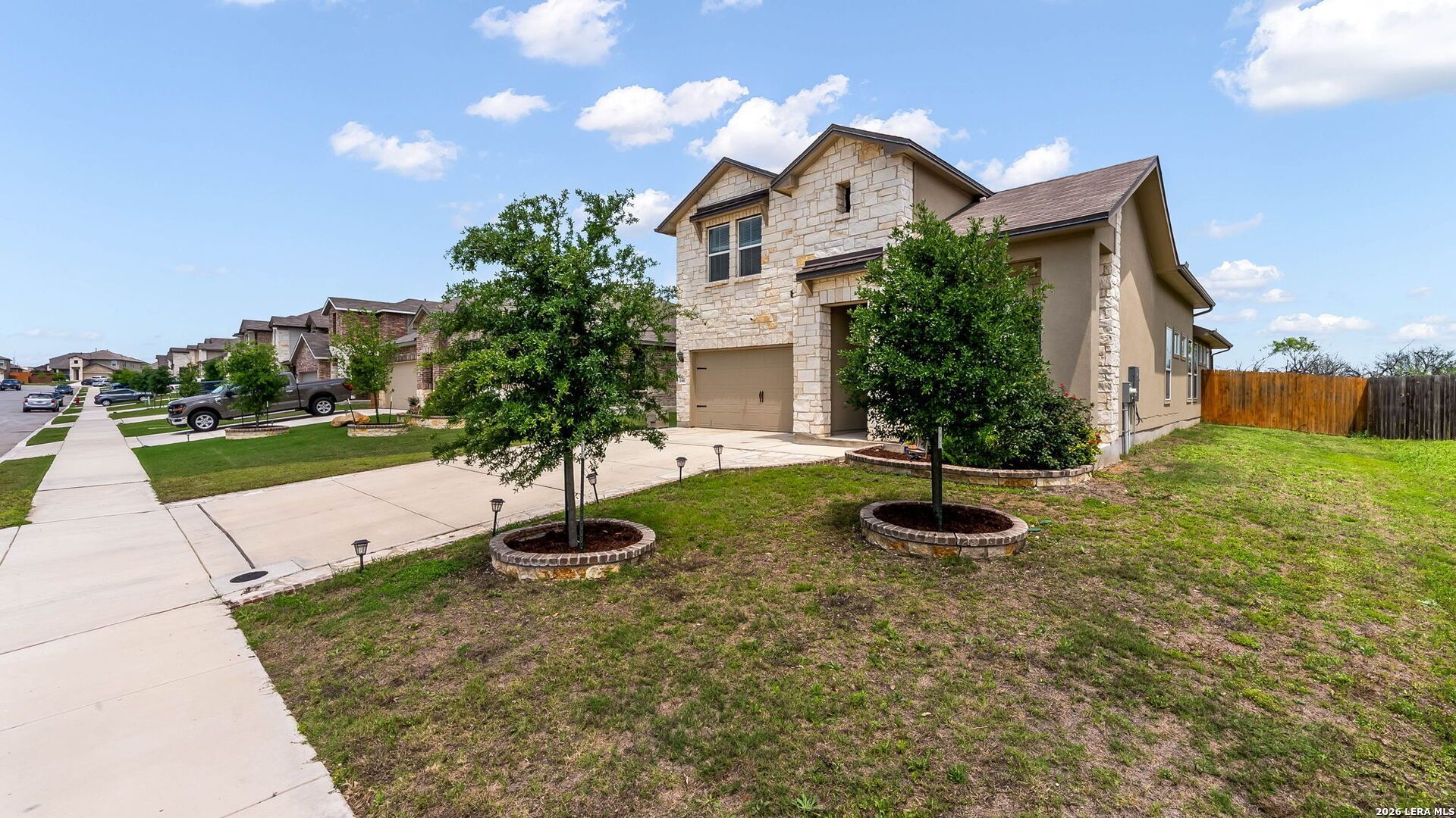 *NEW UPGRADES throughout home* Welcome to 646 Overlook Ridge in the desirable Steele Creek community of Cibolo, TX! This beautifully upgraded two-story home offers 4 bedrooms and 2.5 bathrooms, combining modern style with thoughtful enhancements throughout. Step inside to find a bright and inviting layout featuring a stunning custom living room accent wall complete with an electric fireplace and built-in shelving-perfect for relaxing or entertaining. The kitchen is a true centerpiece, showcasing a spacious island, stylish accent wall, and an upgraded dining area highlighted by a designer light fixture. Downstairs and along the staircase, all carpet has been replaced with durable and elegant luxury vinyl plank flooring, creating a seamless, modern look. The entryway and half bathroom have been tastefully updated, while ceiling fans and black-accented fixtures throughout the home add a sleek, contemporary touch. Upstairs, the owners suite has been enhanced with a renovated closet and upgraded flooring, offering both style and functionality. Additional shelving in the upstairs bathroom provides extra storage and convenience. Outdoor living is just as impressive with an expanded concrete back porch-ideal for gatherings or quiet evenings. The home also features permanent exterior lighting, installed gutters, and a fully upgraded garage with fresh paint, epoxy flooring, and an overhead storage rack. Located in a vibrant community, residents enjoy access to a pool, clubhouse, park/playground, jogging trails, and sports courts-providing plenty of opportunities for recreation and leisure. This move-in-ready home blends comfort, style, and upgrades in all the right places-ready to impress from the moment you arrive.