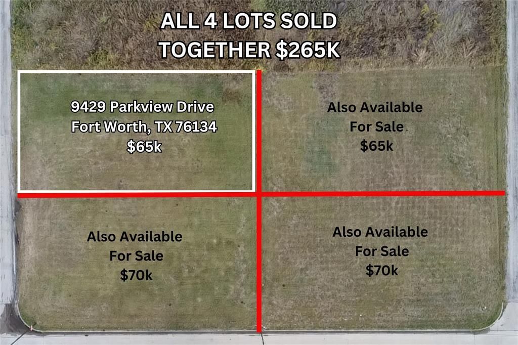 Investor-Developer Opportunity in Crowley, TX! Located at 9433 Parkview Drive, this prime lot is being sold together with 3 adjoining lots for a total package price of $265,000. Offering ample space and frontage, this combined property is ideal for residential development, a builder's project, or a long-term investment. Buyer to verify zoning and usage. Situated in a growing area with easy access to major roads and local amenities, the possibilities are wide open. Don’t miss your chance to secure four contiguous lots